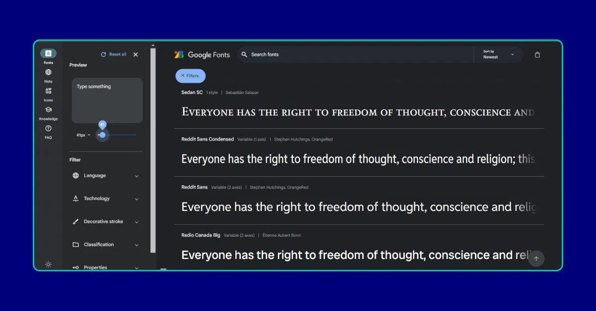 We love using Google Fonts because it has a rich library of open-source fonts that you can choose from.