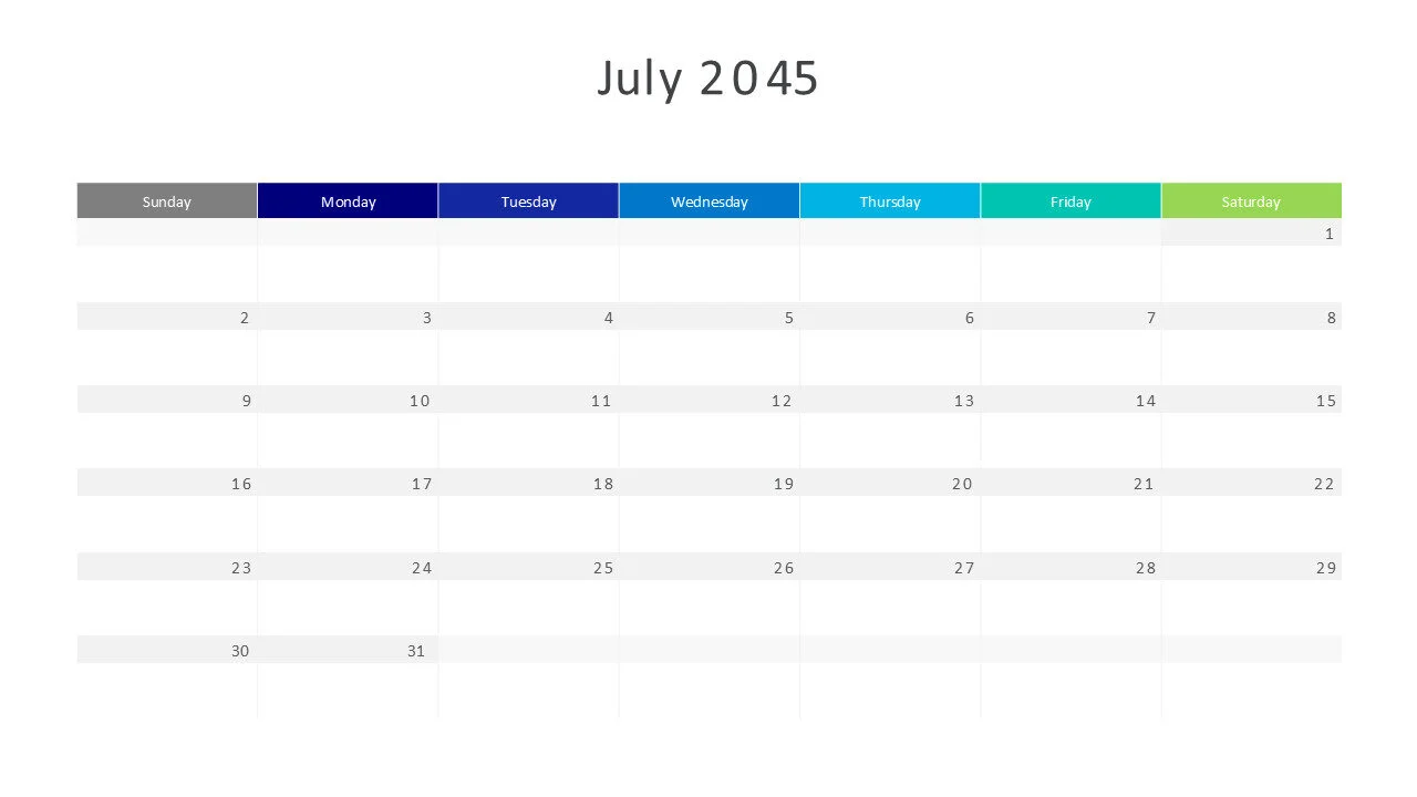 July 2045 calendar