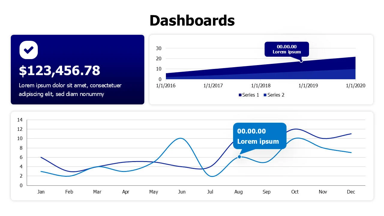 Dashboard infographic template with area and line charts, suitable for trend analysis and KPI reports.
