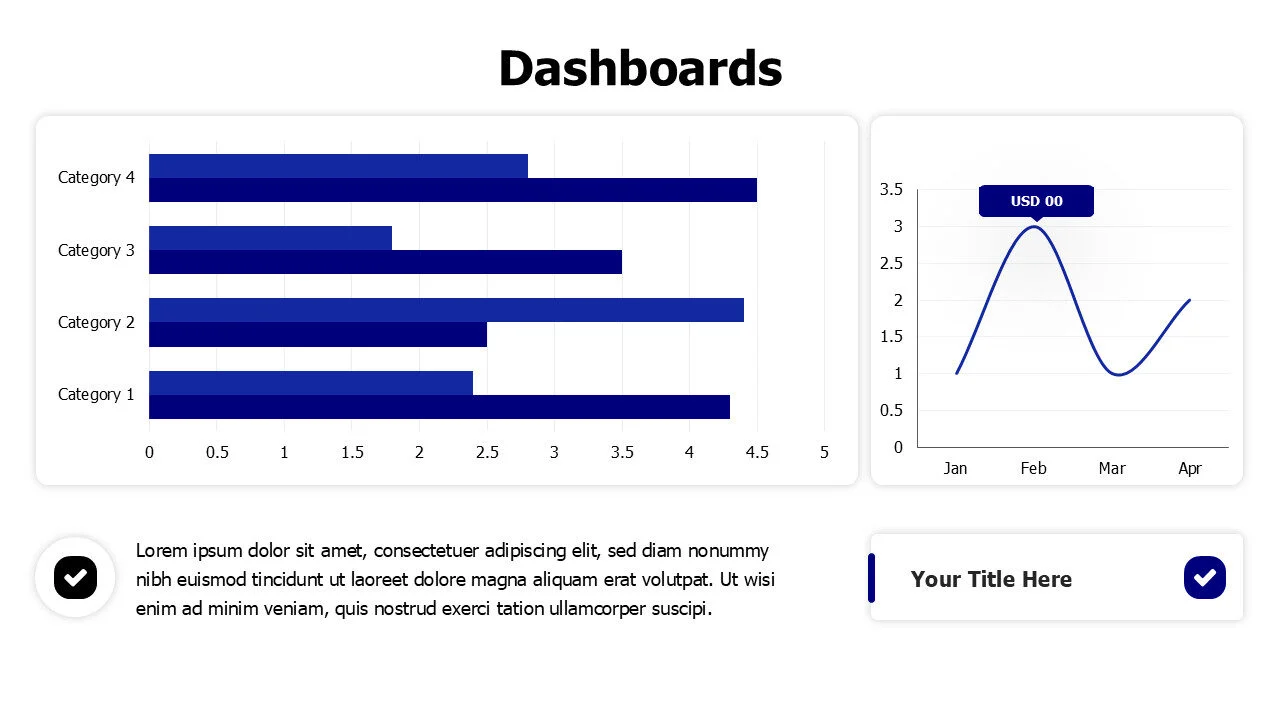 Dashboard infographic template with bar and line charts, perfect for performance tracking and reports.