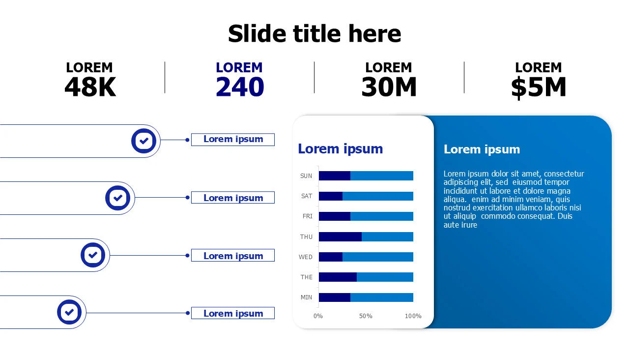 Dashboard infographic template featuring bar charts with numbers and icons, ideal for visualizing performance and KPIs.