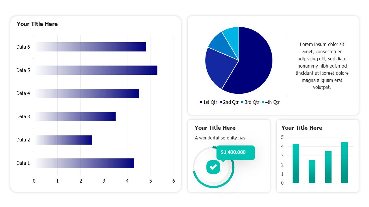 Infographic template showcasing colorful pie and doughnut charts in a dashboard, ideal for data reports.
