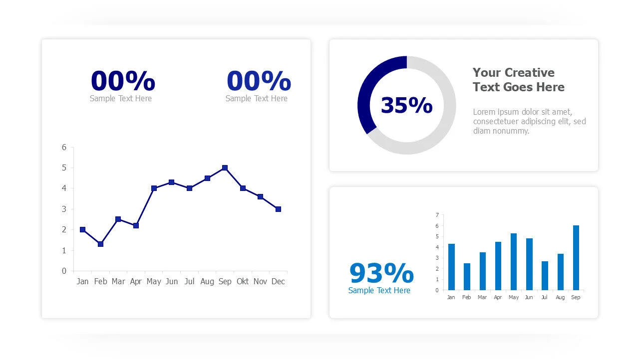 Professional dashboard infographic template with area and bar charts, great for visualizing complex data in presentations or reports.