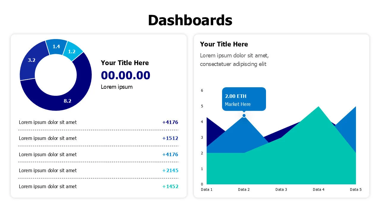Infographic template featuring doughnut charts with a table in a dashboard, ideal for data reports.