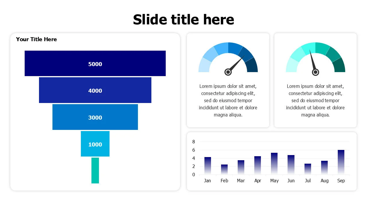 Professional dashboard infographic template with funnel charts, ideal for sales, marketing, and conversion analysis.