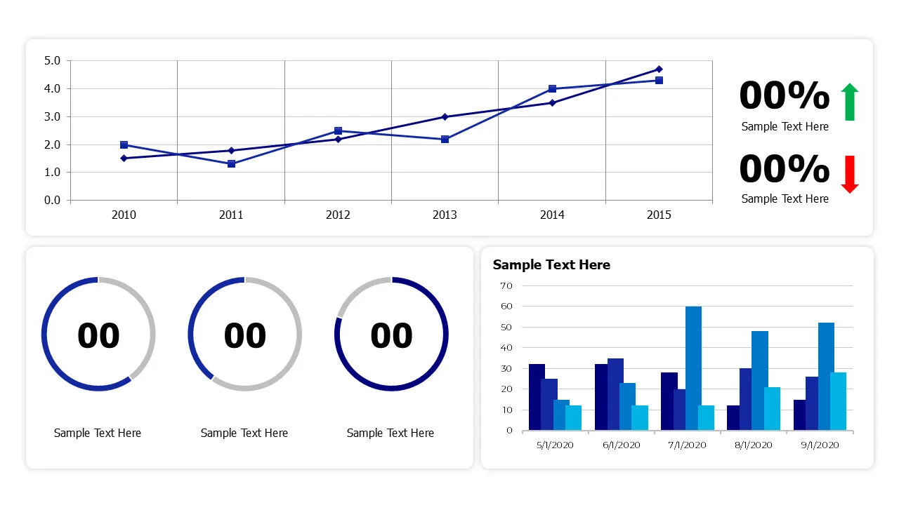 Minimal dashboard infographic template featuring line and doughnut charts, perfect for clean presentations.