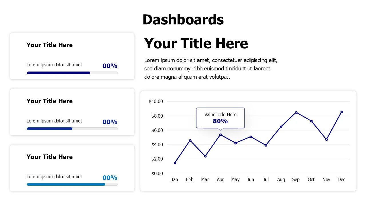Dashboard infographic template featuring line and percentage bar charts, suitable for detailed reports.