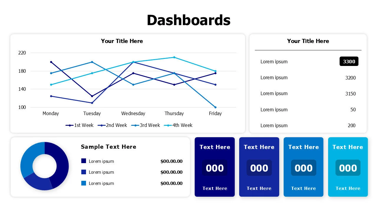 Dashboard infographic template with line charts and colored blocks, designed for modern business presentations.