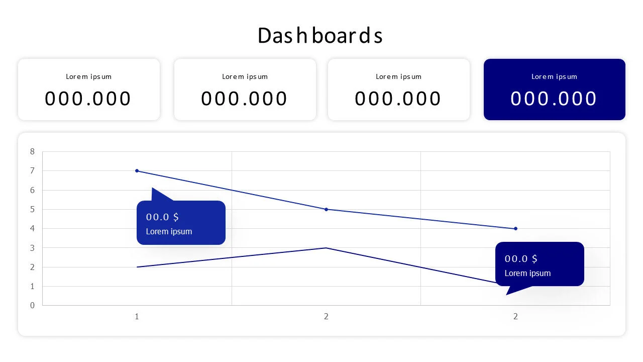Dashboard infographic template with line charts and numbers, version 1.0, perfect for tracking data.