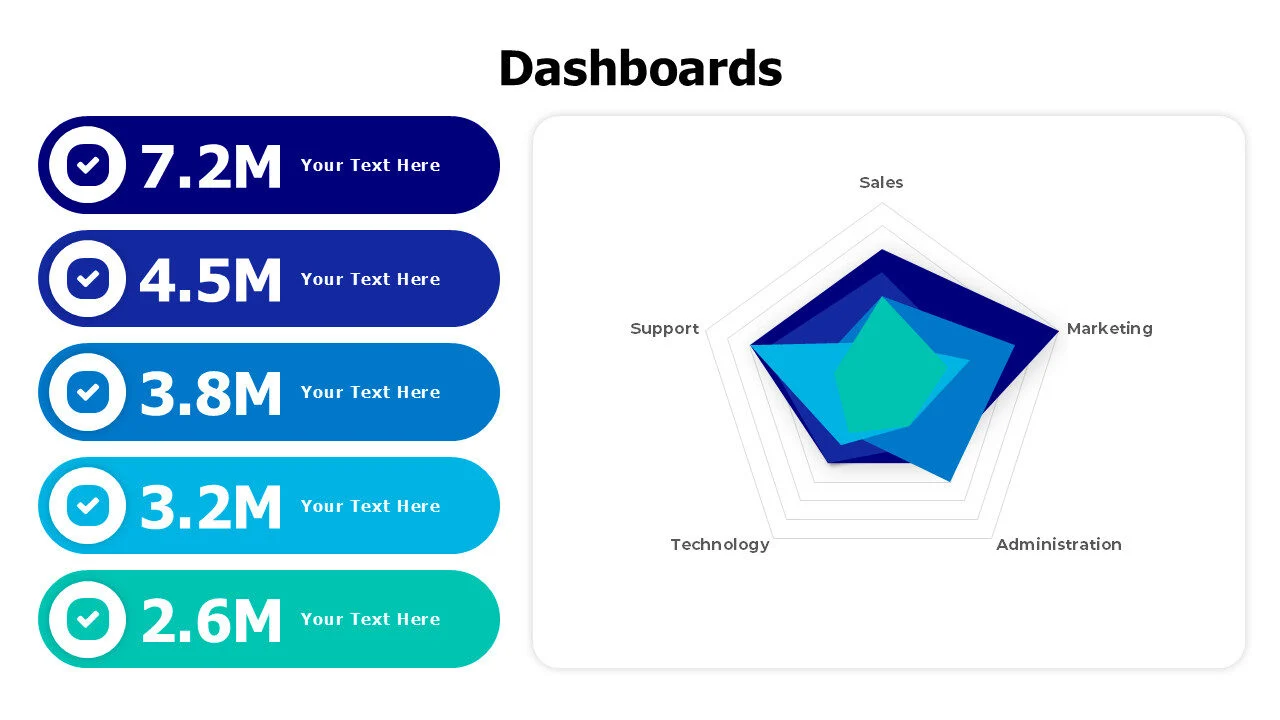 Dashboard infographic template featuring a radar chart with colored blocks, perfect for competitive analysis.
