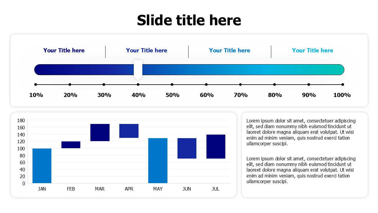 Modern dashboard infographic template featuring a waterfall chart and colorful meters, ideal for business performance tracking.