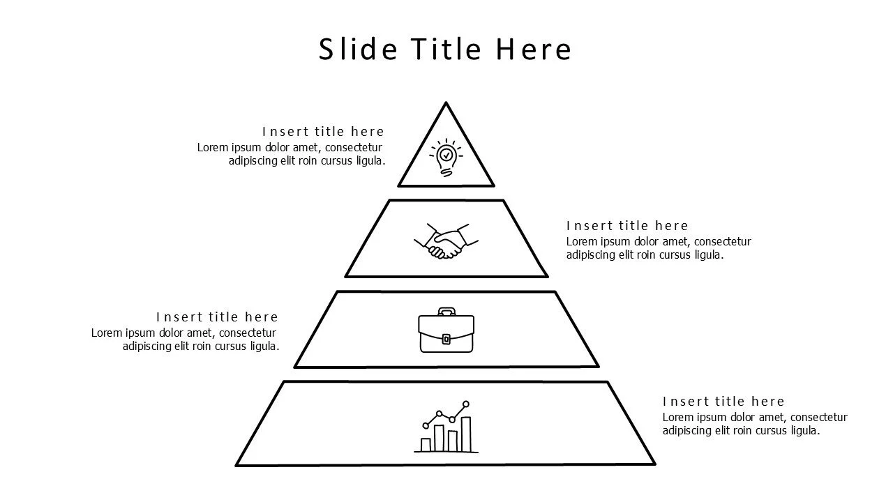 Outline Icon Pyramid Infographic. Clean 4-level outlined hierarchy with icons for modern business presentations.