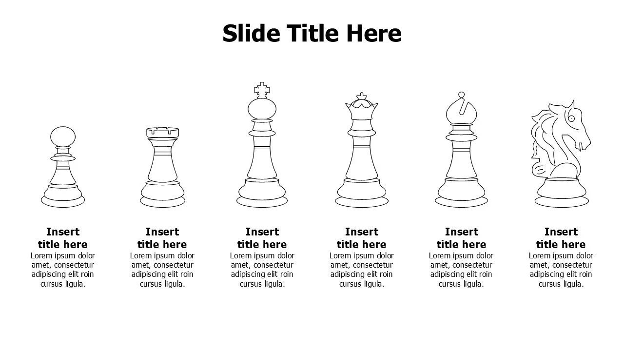 6-Point Outline Chess Elements Infographic. A strategy theme for key game pieces, strategic moves, or critical thinking steps.
