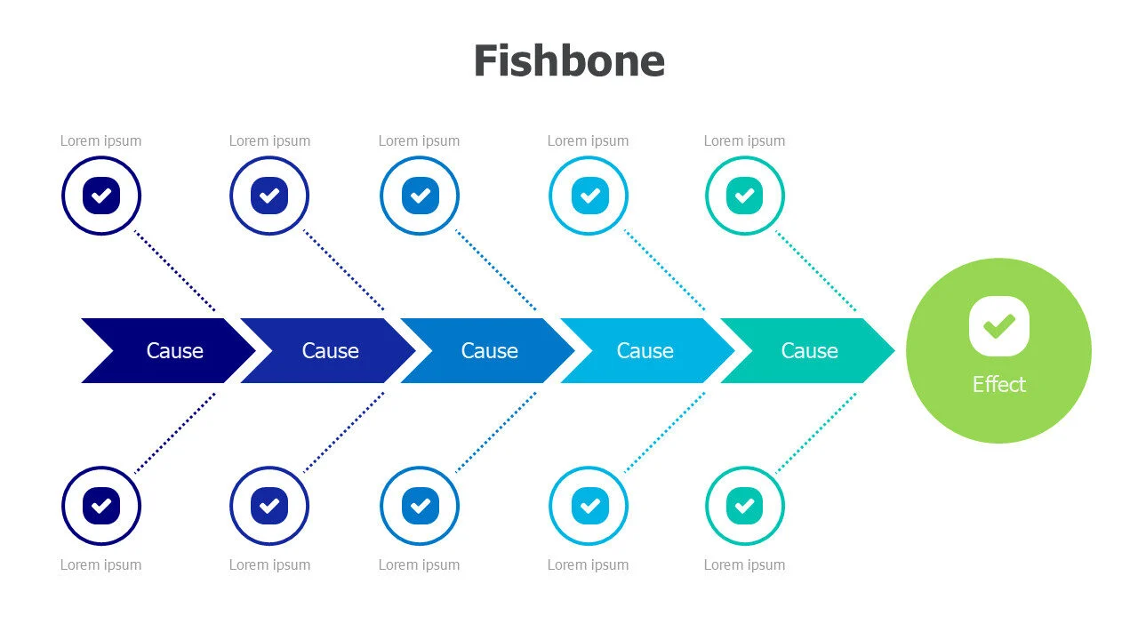 Sixteen-category fishbone diagram for extensive problem-solving. Thorough cause investigation with complete categorization approach infographic template.