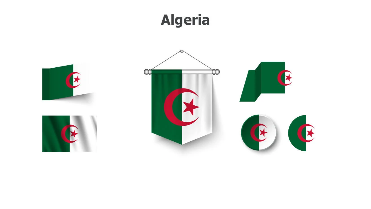 Algerian flag design for North African studies and presentations. Perfect for cultural education and Arab topics infographic template.