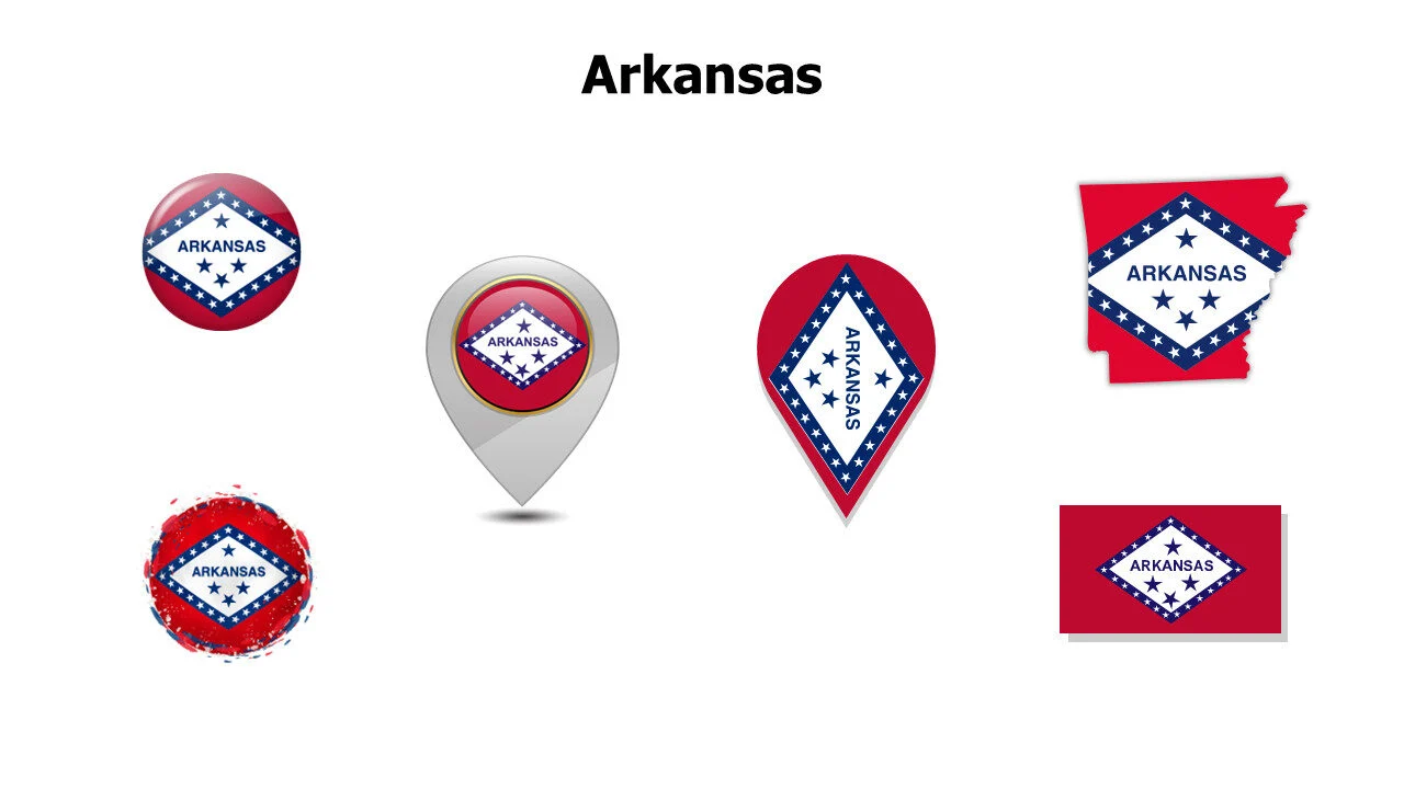 Arkansas state flag for US regional studies and presentations. Ideal for cultural education and geographical topics infographic template.
