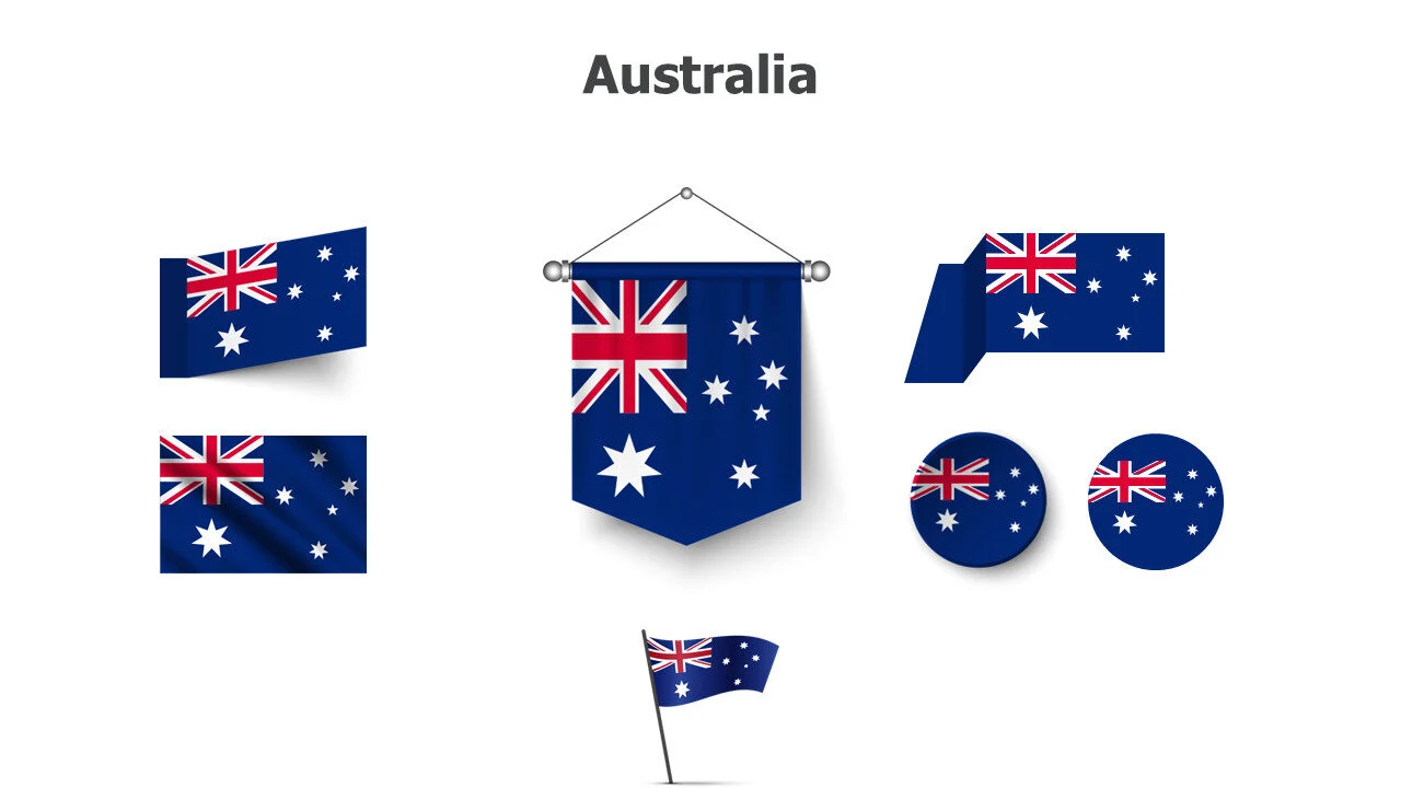 Australian flag design for Oceania studies and Commonwealth topics. Perfect for cultural presentations and international education infographic template.
