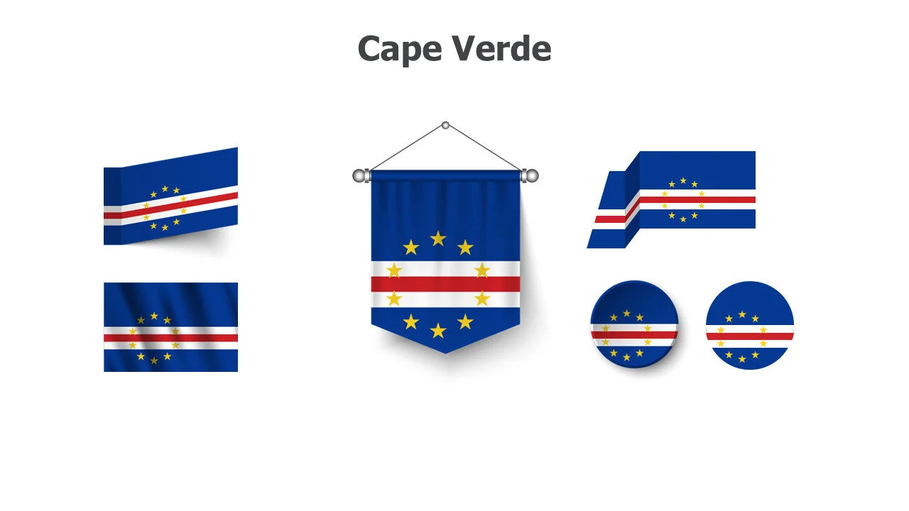 Cabo Verdean flag illustration for African island studies and presentations. Ideal for cultural education and Portuguese topics infographic template.
