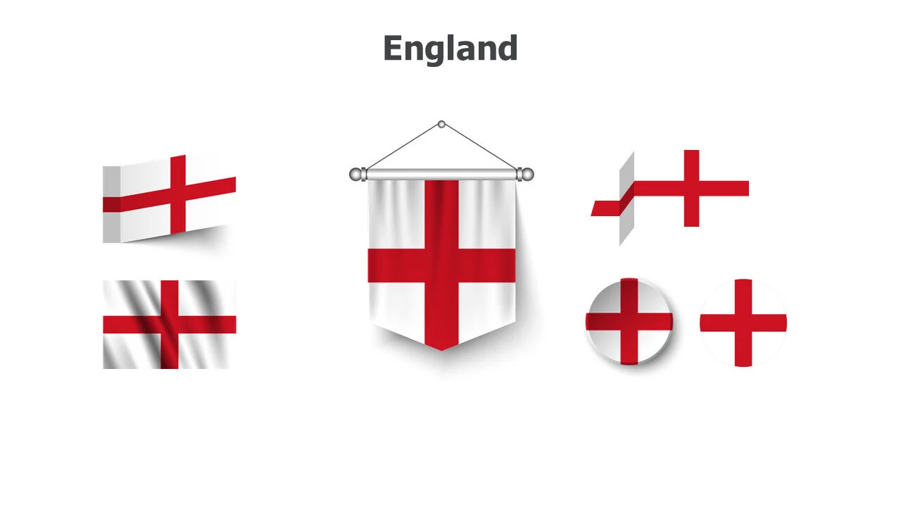 English flag design for United Kingdom studies and presentations. Perfect for cultural education and historical topics infographic template.