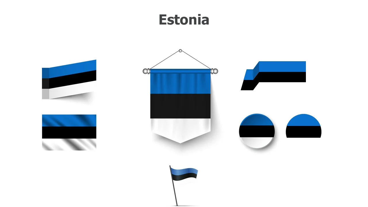 Estonian flag illustration for Baltic studies and presentations. Ideal for cultural education and EU topics infographic template.