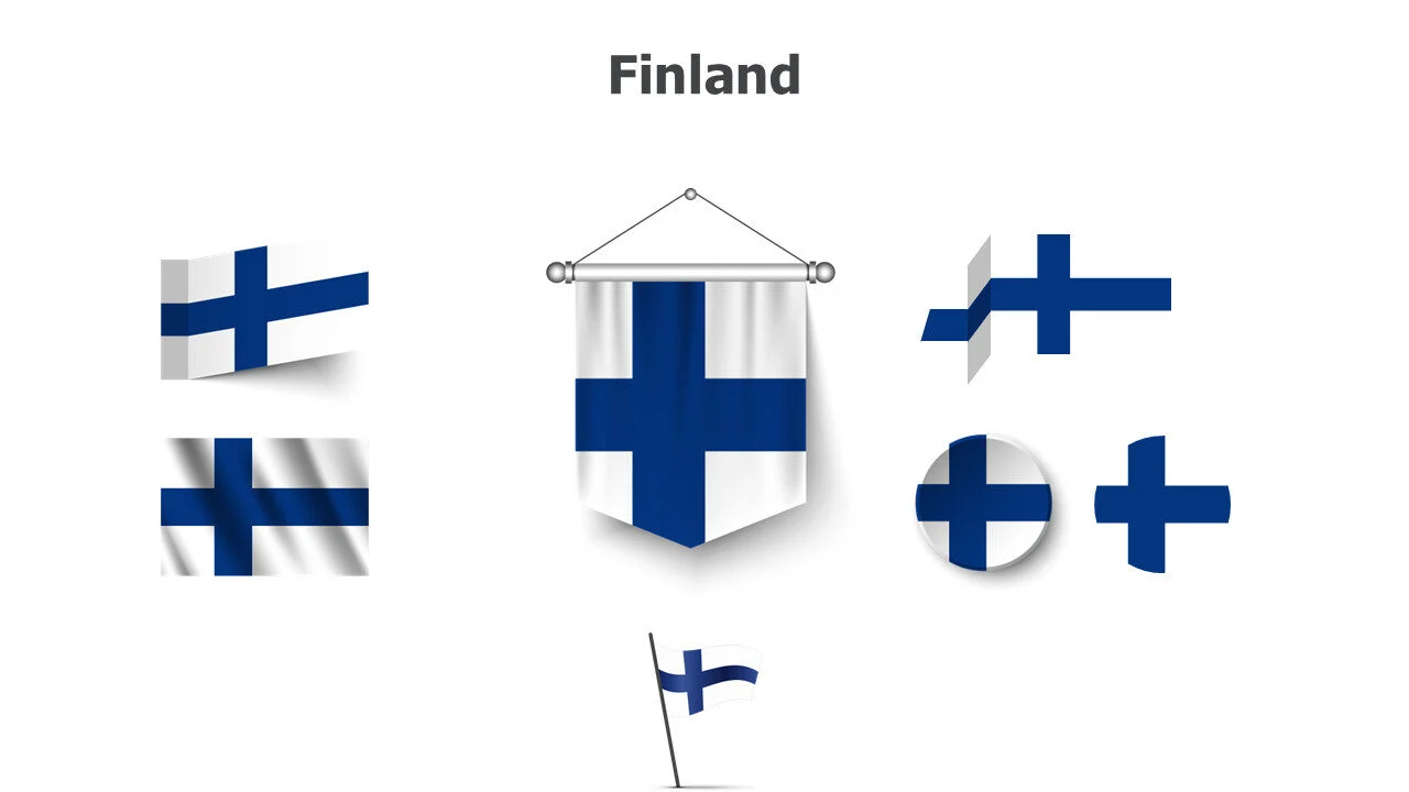 Finnish flag design for Nordic studies and presentations. Perfect for cultural education and European topics infographic template.