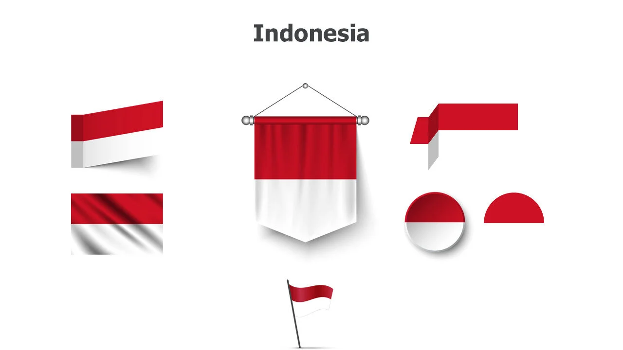 Indonesian flag design for Southeast Asian studies and presentations. Ideal for cultural education and archipelago topics infographic template.
