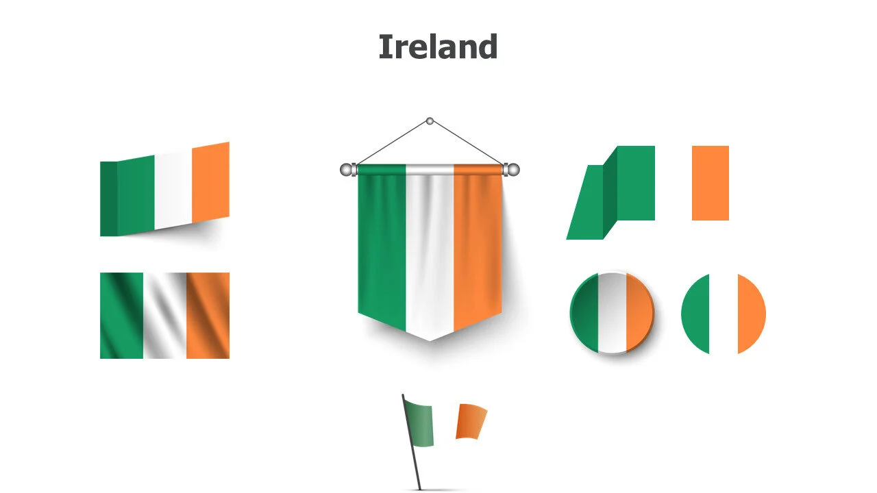 Irish flag illustration for European studies and presentations. Ideal for cultural education and EU topics infographic template.