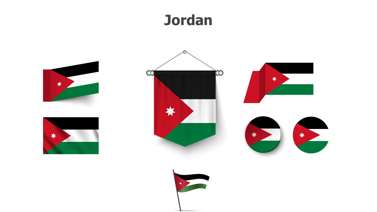 Jordanian flag design for Middle Eastern studies and presentations. Ideal for cultural education and Arab topics infographic template.