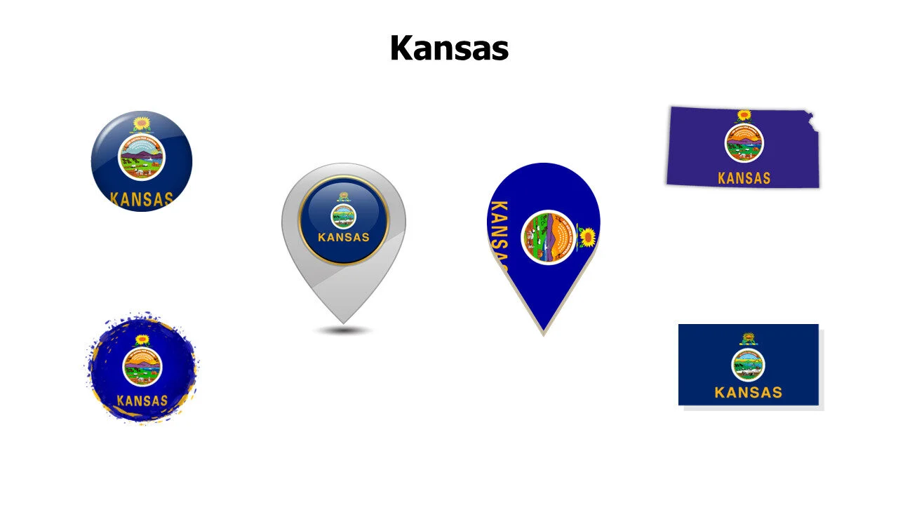 Kansas state flag for US regional studies and presentations. Ideal for cultural education and geographical topics infographic template.