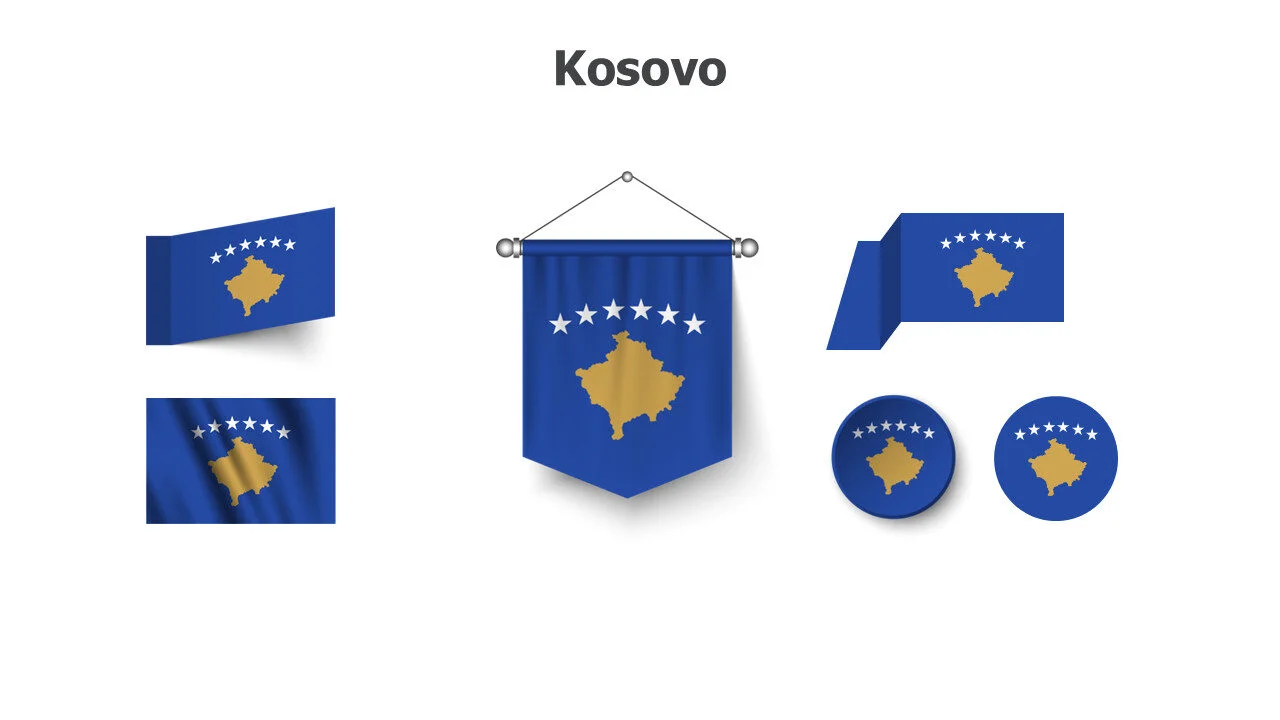 Kosovar flag design for Balkan studies and presentations. Ideal for political education and European topics infographic template.