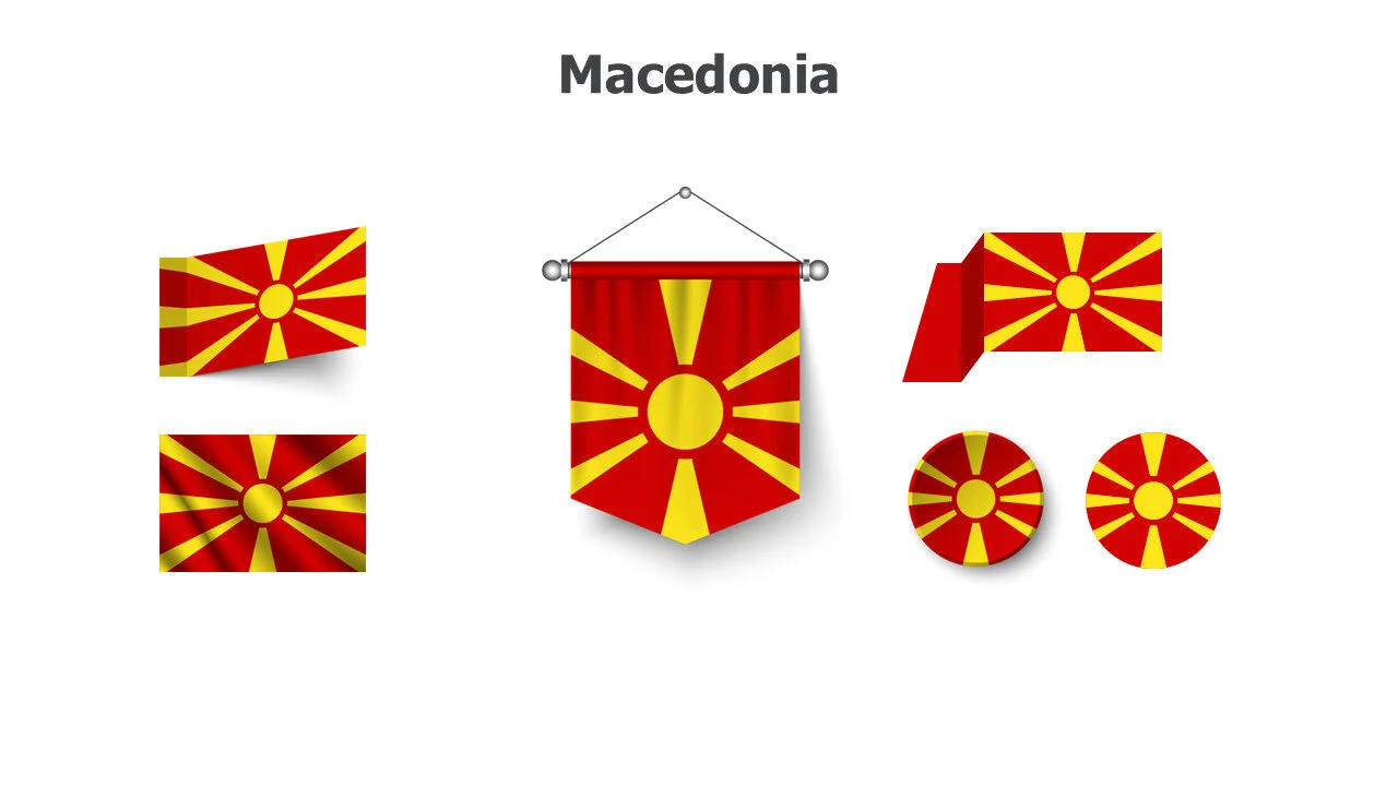 Macedonian flag design for Balkan studies and presentations. Ideal for cultural education and European topics infographic template.