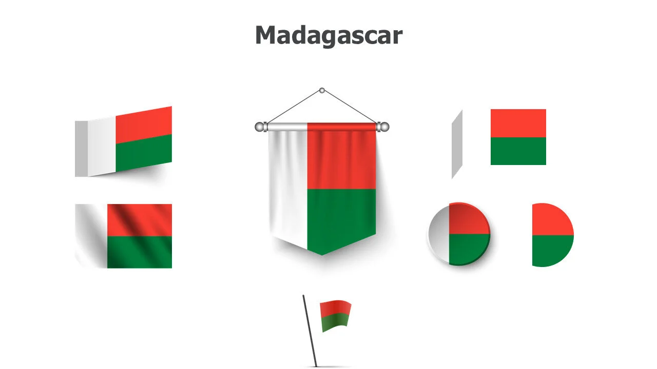 Malagasy flag design for African island studies and presentations. Ideal for cultural education and geographical topics infographic template.