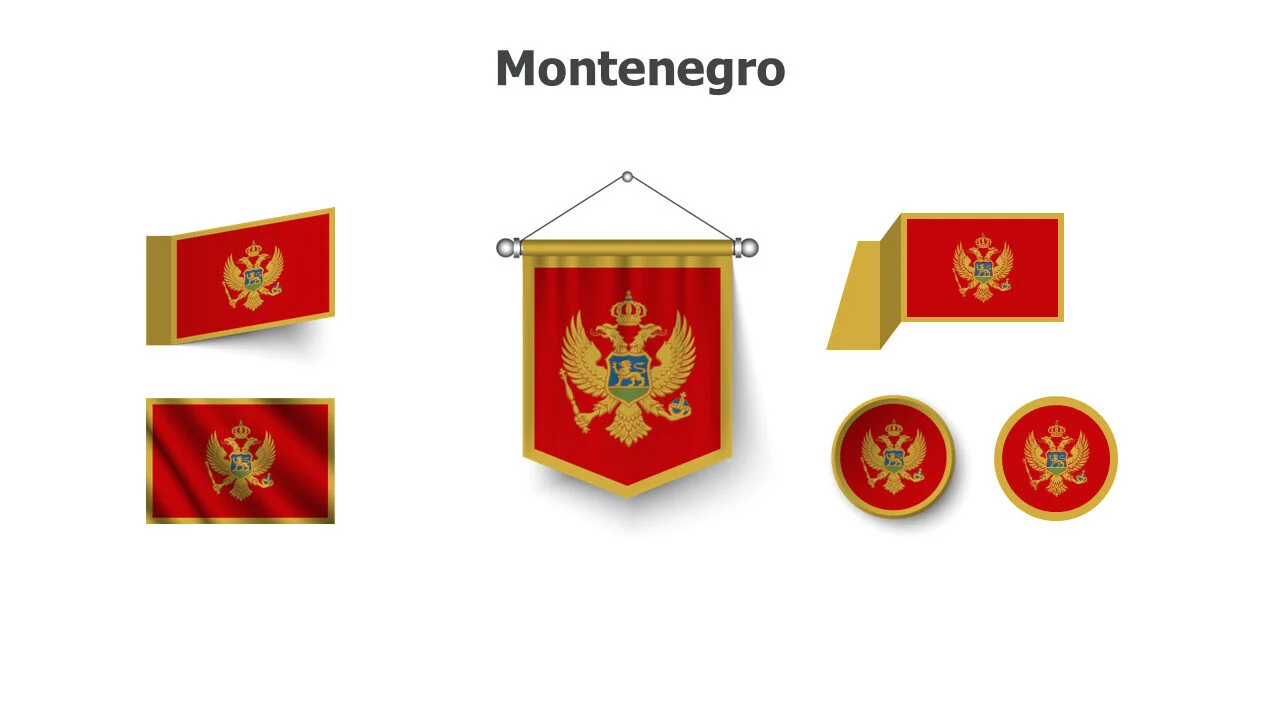 Montenegrin flag illustration for Balkan studies and presentations. Ideal for cultural education and European topics infographic template.