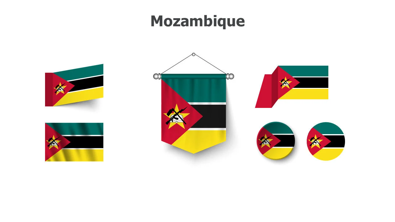 Mozambican flag illustration for Southern African studies and presentations. Perfect for cultural education and Portuguese topics infographic template.