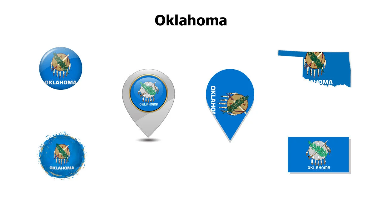 Oklahoma state flag for US regional studies and presentations. Ideal for cultural education and geographical topics infographic template.