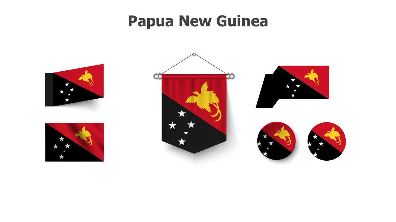 Papua New Guinea flag for Oceania studies and Pacific presentations. Ideal for cultural diversity and regional education topics infographic template.