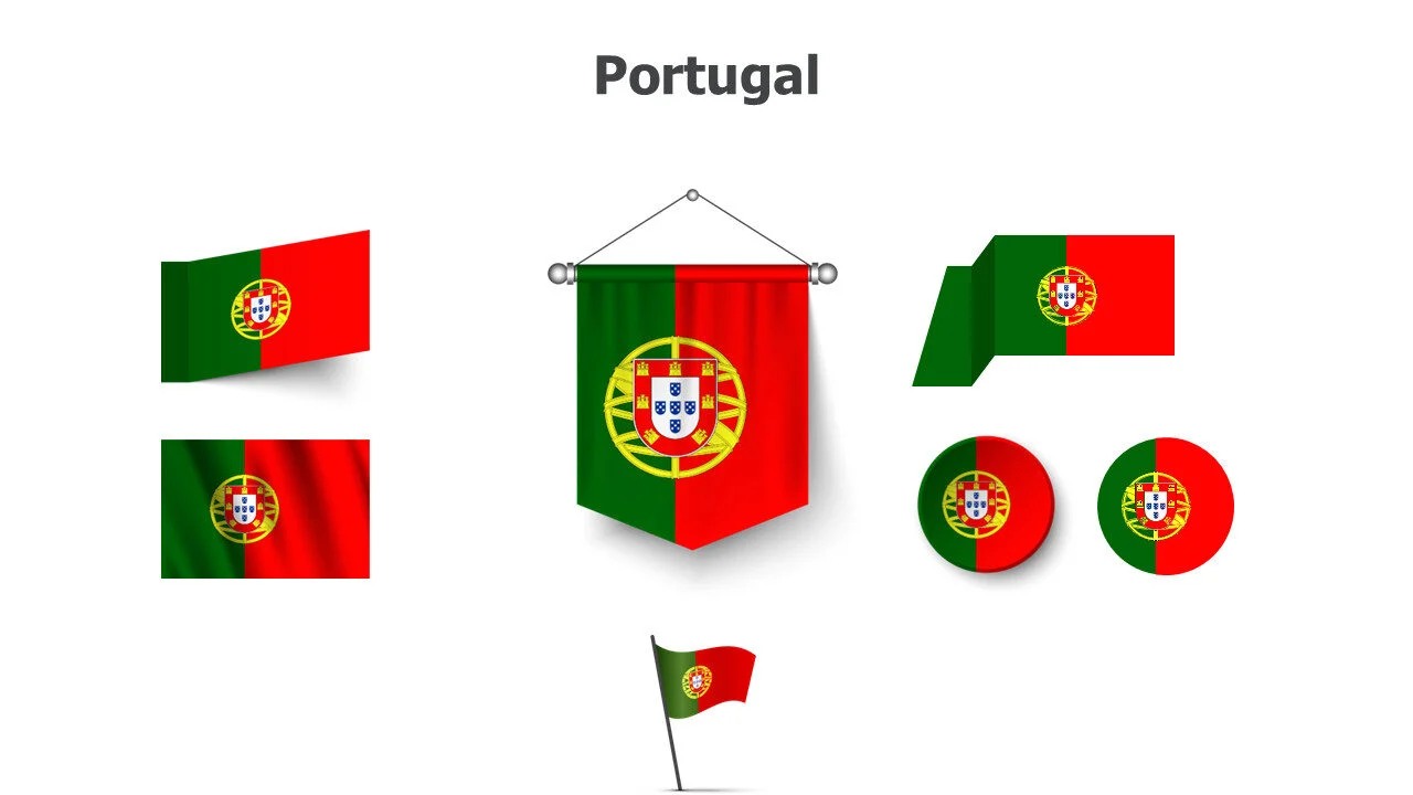 Portuguese flag illustration for European studies and presentations. Perfect for cultural education and historical topics infographic template.