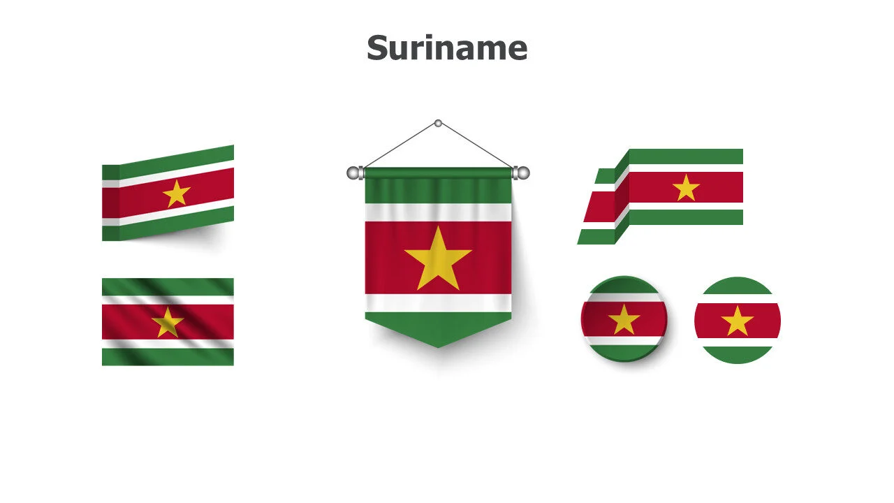 Surinamese flag illustration for South American studies and presentations. Ideal for cultural education and Dutch topics infographic template.