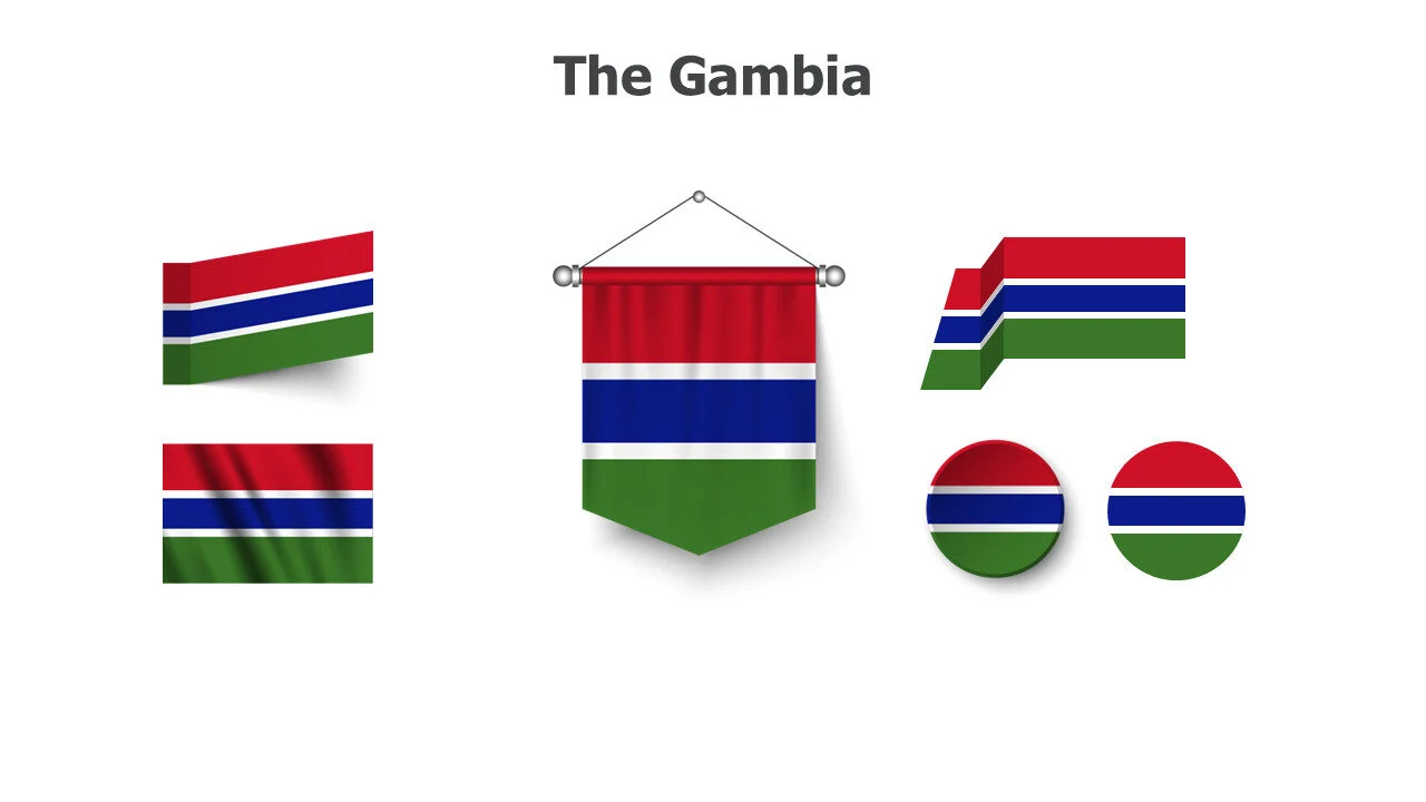 Gambian flag illustration for West African studies and presentations. Ideal for cultural education and river topics infographic template.