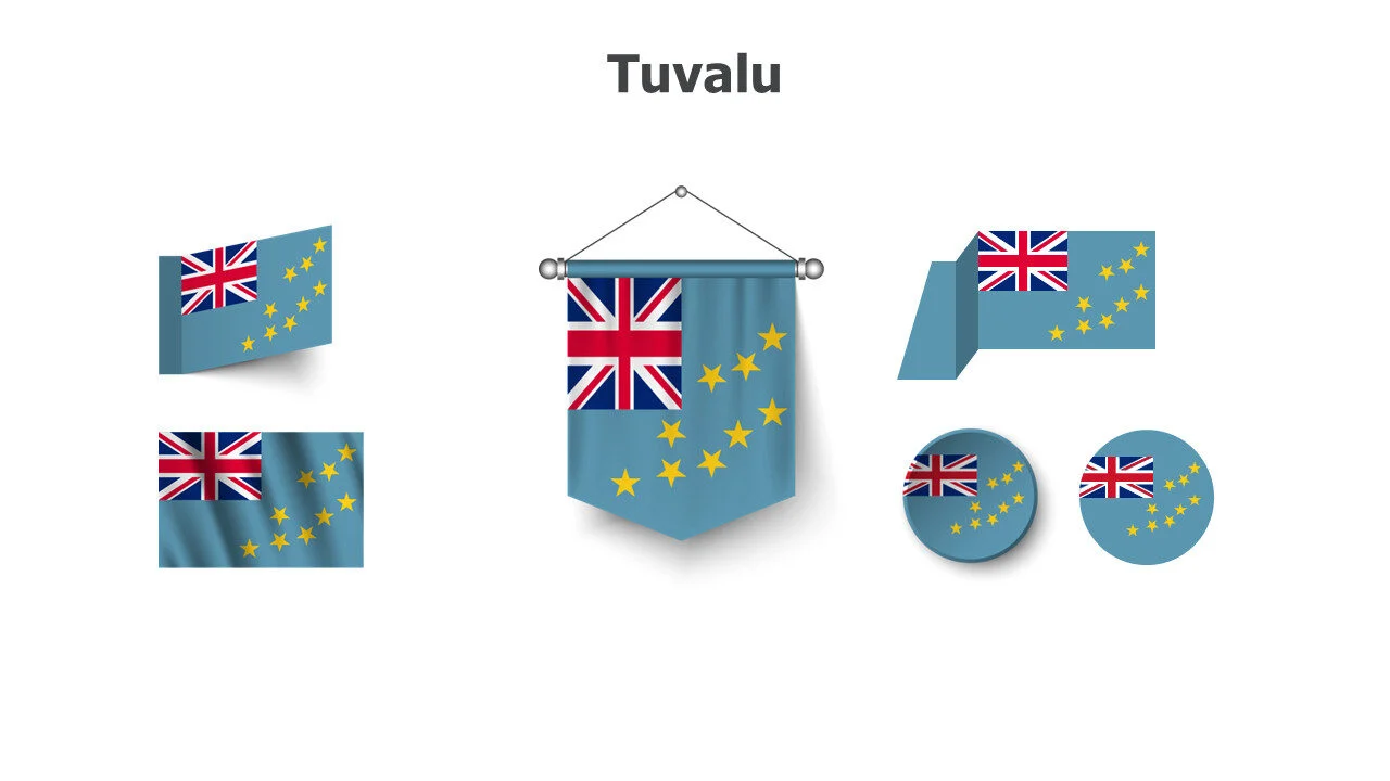 Tuvaluan flag design for Pacific studies and presentations. Perfect for cultural education and island topics infographic template.