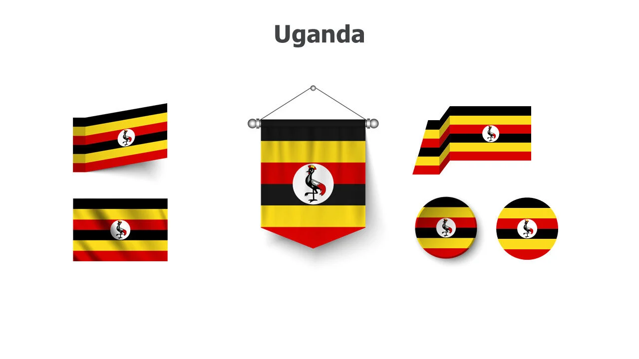 Ugandan flag illustration for East African studies and presentations. Perfect for cultural education and geographical topics infographic template.