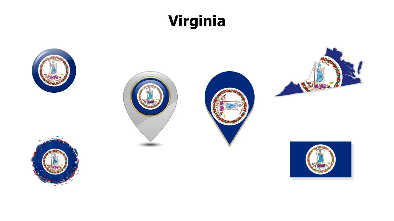 Virginia state flag for US regional studies and presentations. Ideal for cultural education and geographical topics infographic template.