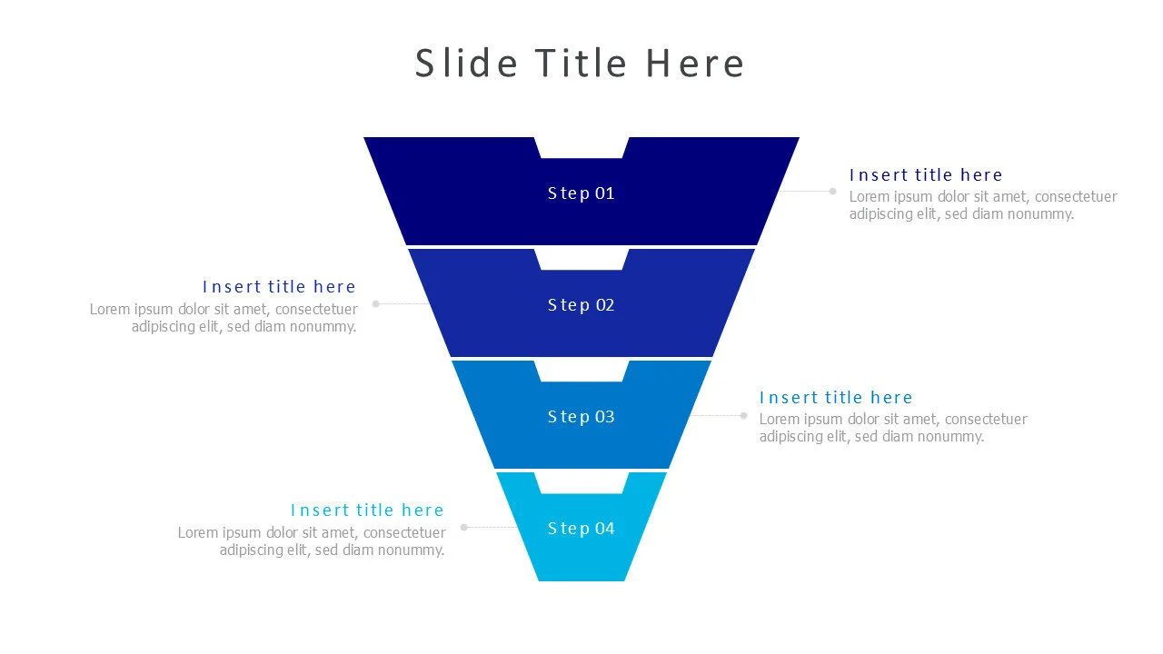 Four-stage funnel with enhanced visual flow and progression clarity. Perfect for customer journey and conversion paths infographic template.