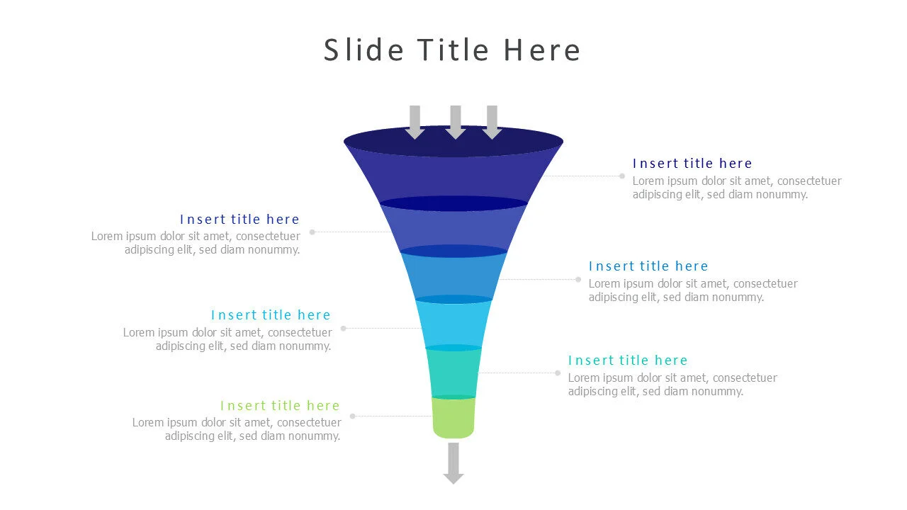 6-Level Funnel Infographic Template. A comprehensive visual tool to showcase detailed 6-stage processes like customer journey mapping.