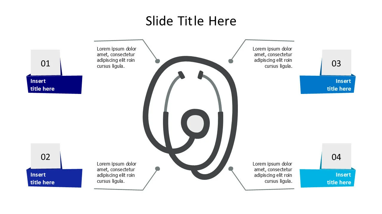 4-Point Twisted Stethoscope Infographic. A creative, circular design for listing diagnostic steps or health assessment criteria.