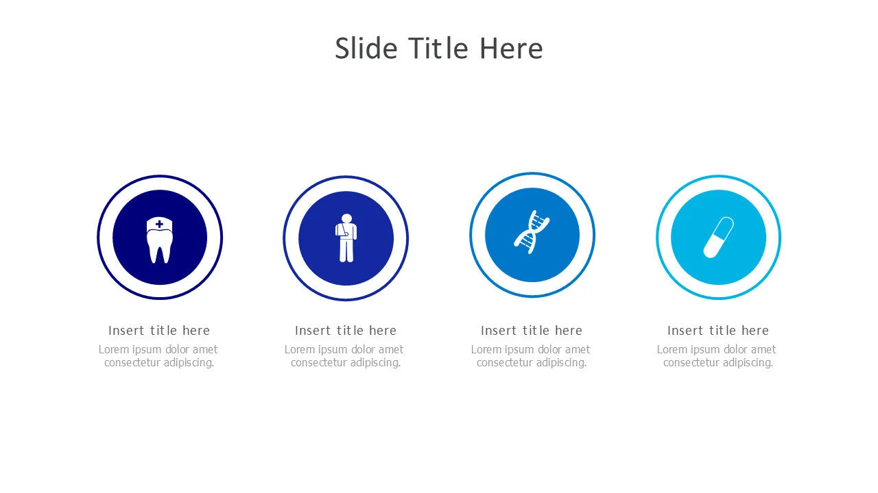 4-Point Healthcare Icons Infographic. A versatile medical slide to list key services, features, or health statistics clearly.