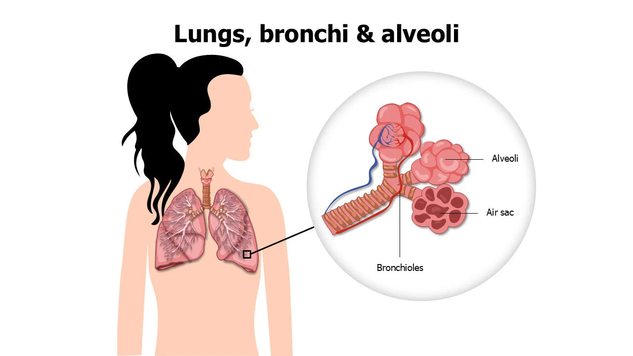 Lungs bronchi and alveoli woman anatomy illustration in a slide.
