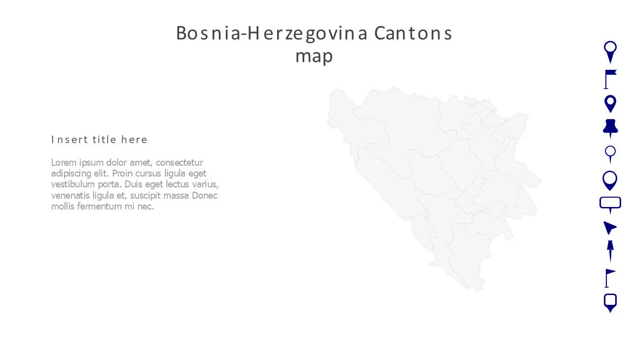 Bosnia Cantons Map Template. Detailed cantonal map of Bosnia-Herzegovina for regional analysis and planning.