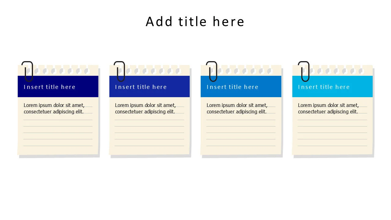 Square Sticky Notes Infographic. Four square notes with paper clip for task management and planning.