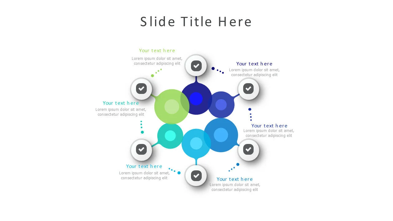 6-point round infographic template for presenting key steps, ideas, or process stages in a simple, clean, and visually appealing circular layout.